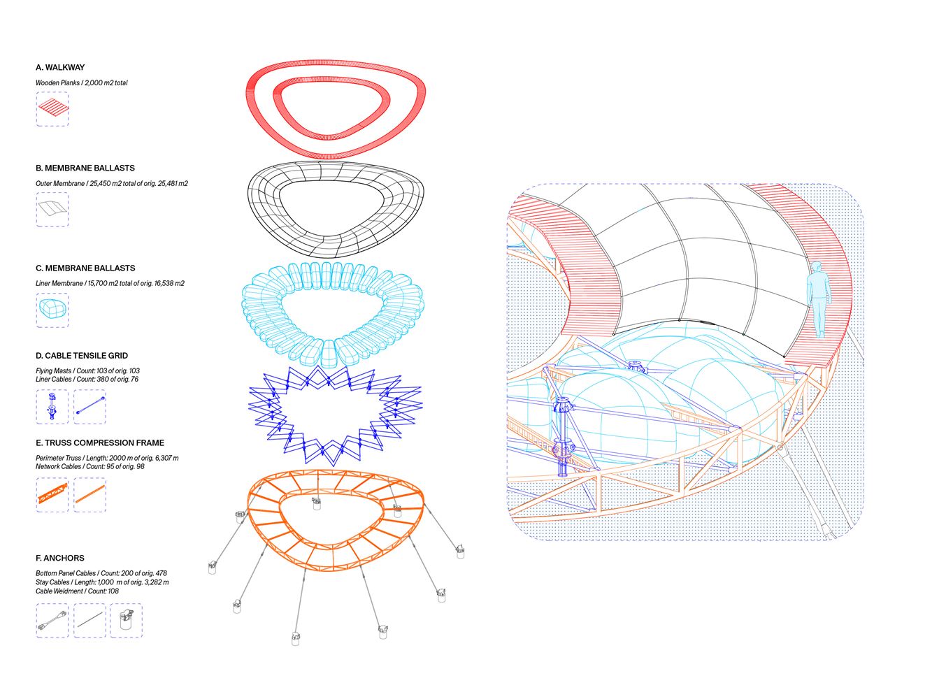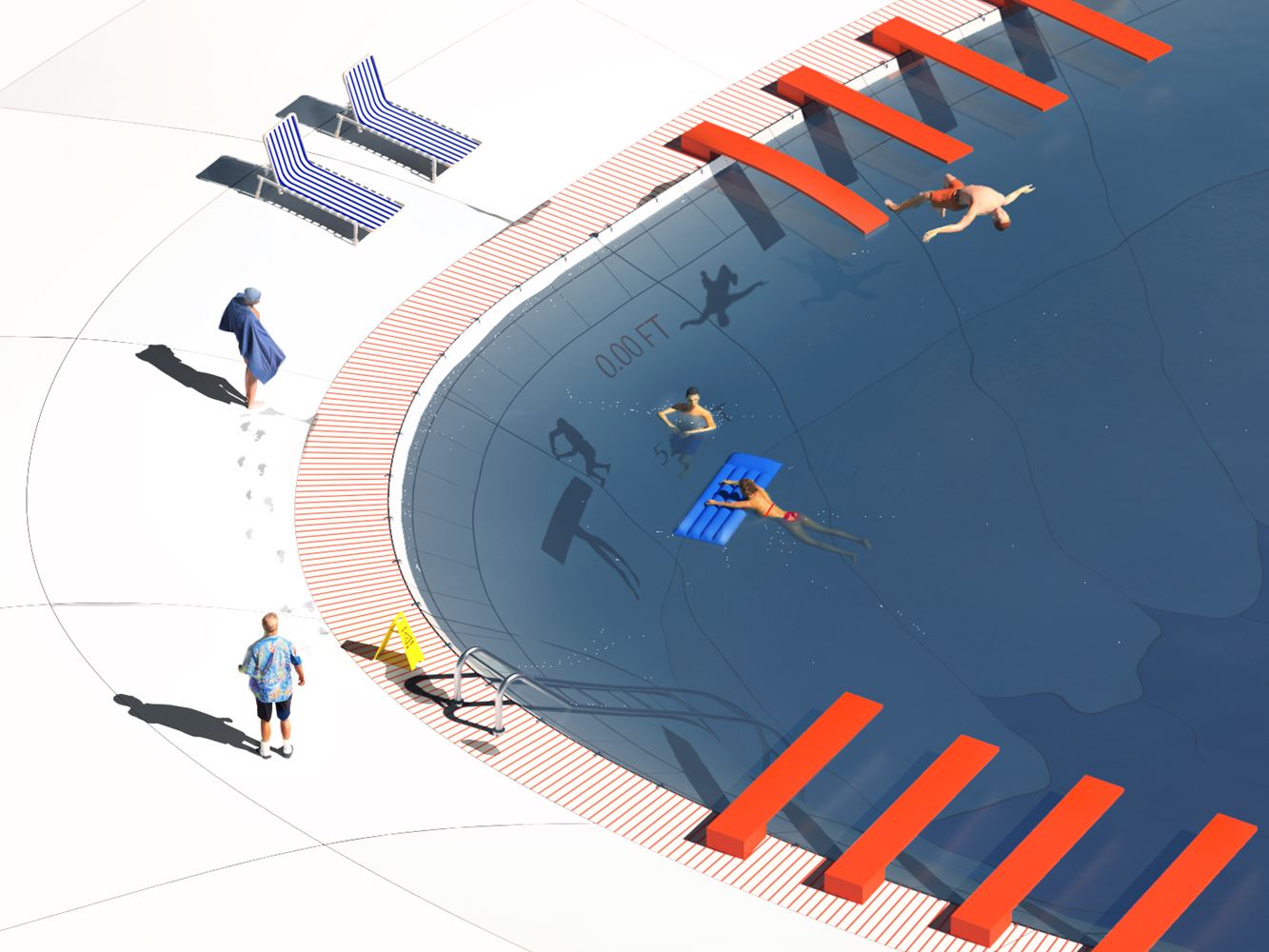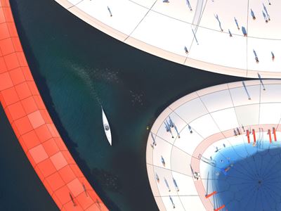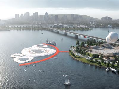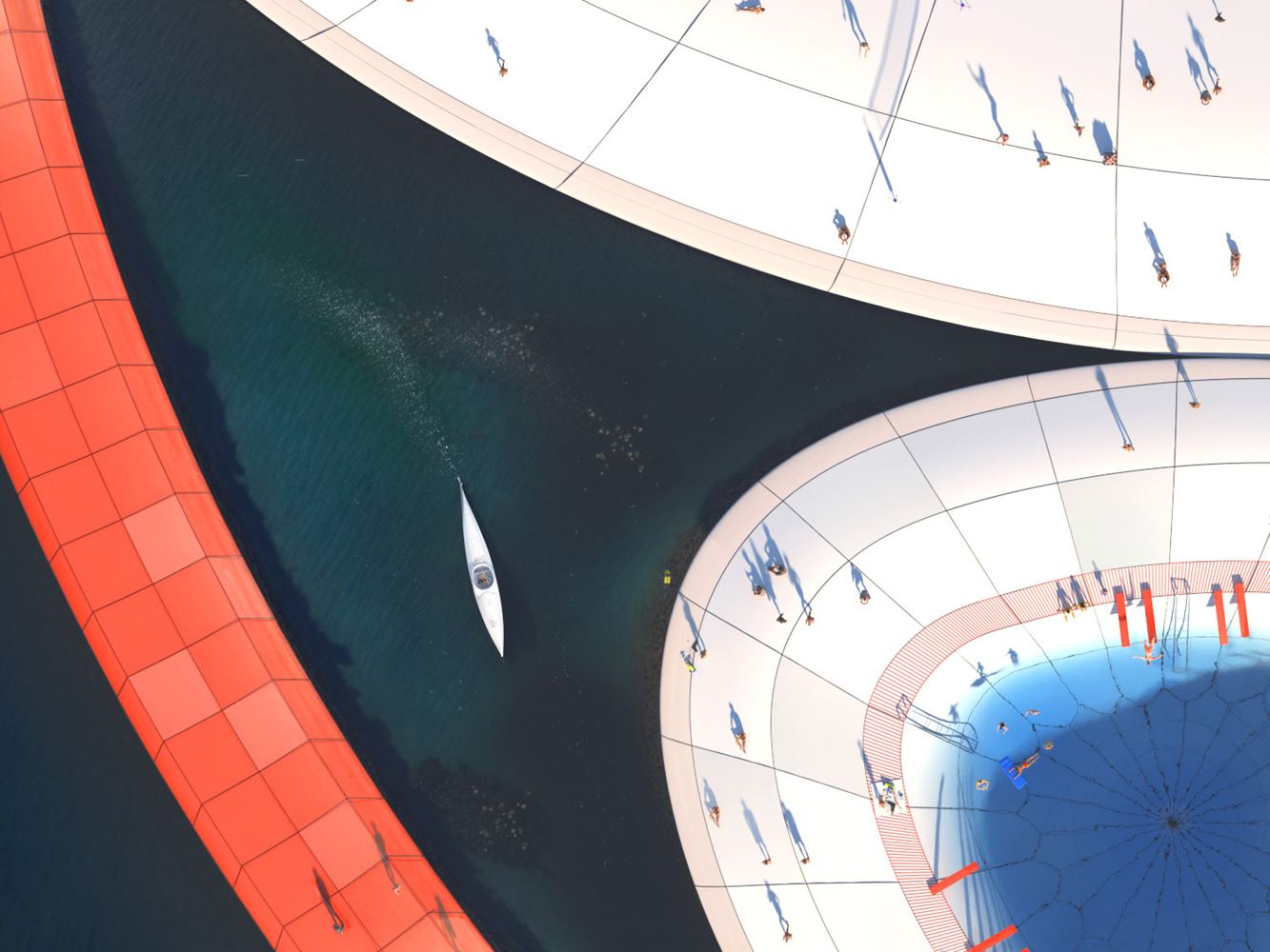 FLOAT reimagines Montreal's Olympic Stadium roof as a floating public space on the St. Lawrence River. Through its symbolic reuse of iconic materials, it creates a playful, contemplative environment that reconnects citizens with the river, fostering reflection, recreation, and community engagement while promoting circular architecture and sustainability.