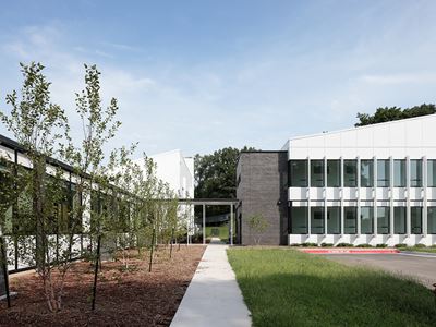 Synergy Services Transitional Housing Campus reimagines what transitional housing can be—turning an underutilized property into a restorative, trauma-informed living environment. The architecture blends adaptive reuse with new construction, preserving elements like existing skylights and sawtooth roof forms to anchor the campus in memory and place.